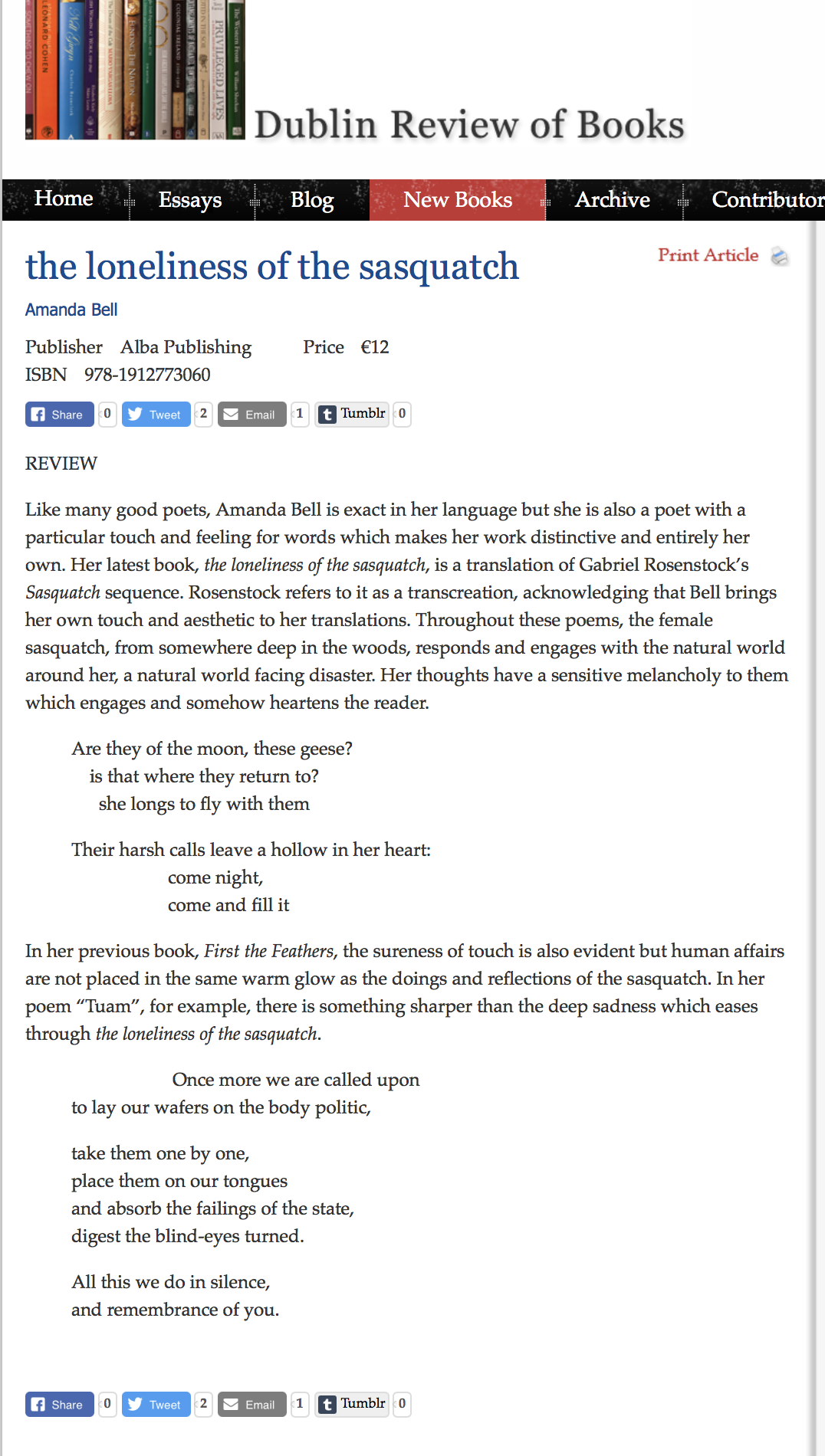 Amanda’s review of Rita Ann Higgins’s Pathogens Love a Patsy in The Dublin Review of Books