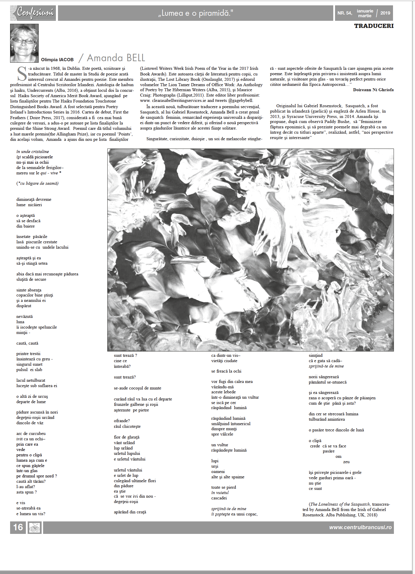 Amanda has been commissioned by Holocaust Awareness Ireland to write a response to ‘The Objects of Love’ exhibition. She has a poem (‘Brittle Cinder’) in the all poetry issue of The Stinging Fly, a haibun in the forthcoming Dedalus Anthology of Love Poetry, and a long travel-based haibun forthcoming in Contemporary Haibun Online.