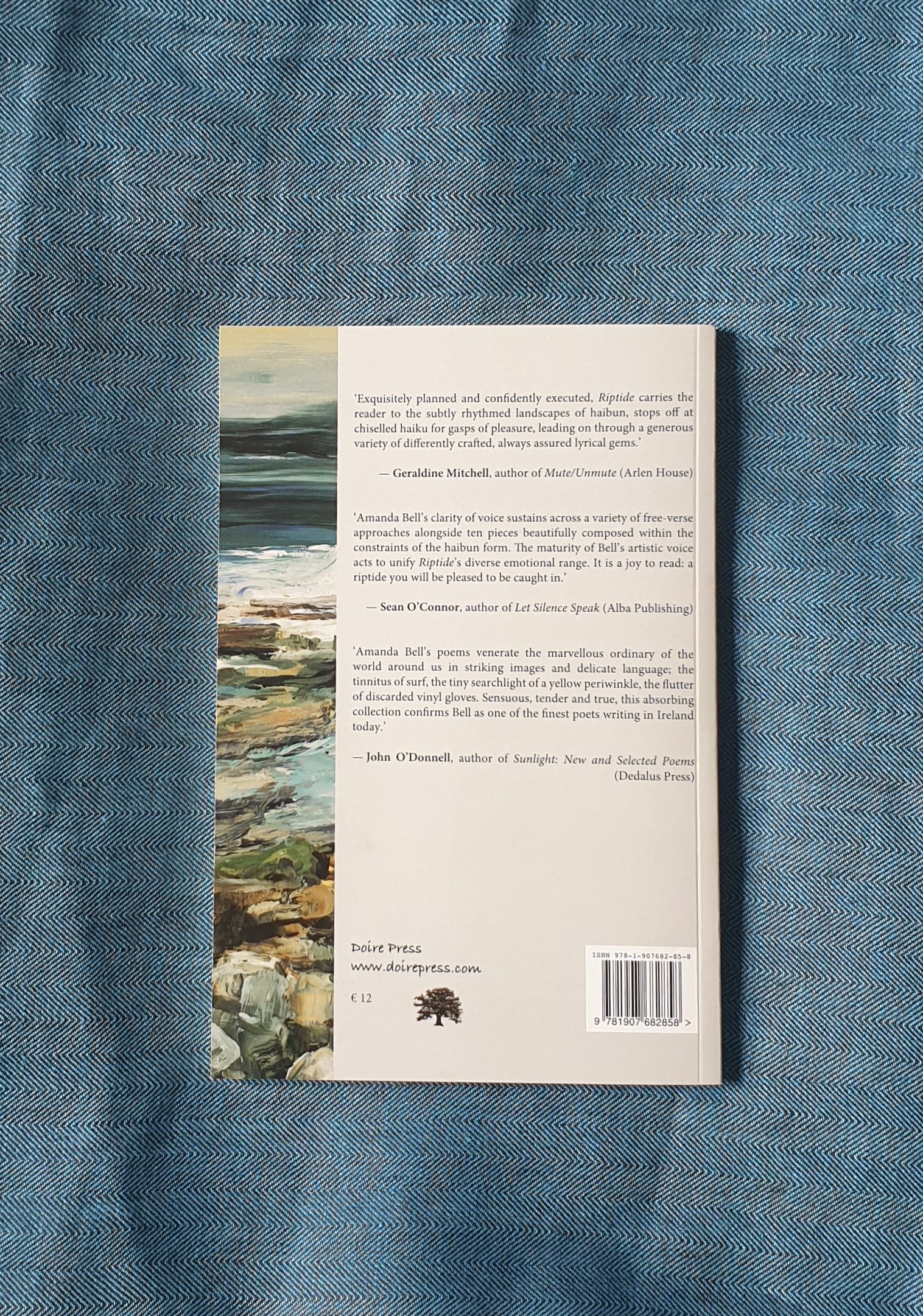 Amanda was judging the haibun competition for the British Haiku Society this February; you can read the report here. She will be reading at Cork World Book Festival on 20th April with Nithy Kasa and William Wall (Poet Laureate of Cork), and at Limerick Literary Festival and Cork Harbour Festival, dates tbc. Riptide will be given an in-person launch alongside Nithy Kasa’s debut and David Butler’s Liffey Sequence at Poetry Ireland on 11 May.